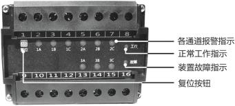 檢測(cè)各路運(yùn)行狀態(tài),當(dāng)任何一路保護(hù)時(shí),故障燈點(diǎn)亮。