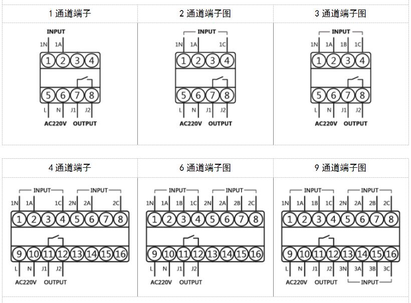 電流互感器過(guò)電壓保護(hù)器的接線方式如下圖所示(以三路三個(gè)繞組保護(hù)產(chǎn)品為例),L和N是電源輸入端,請(qǐng)接入AC220V工作電源,當(dāng)電源輸入正確時(shí),工作指示燈每秒閃爍1次,保護(hù)器提供了一組無(wú)源常開(kāi)輸出接點(diǎn)J1與J2,一般情況下,電流互感器均連接在A、B、C三相上,少數(shù)連接在兩相上,個(gè)別連接在一相上,絕大多數(shù)都是星型連接。工程接線圖如下